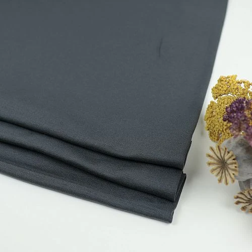 BASIC STRETCH JERSEY aus Tencel™ Lyocell Fasern ist ein exklusives, glattes und seidig weiches Single Jersey Gestrick von meet MILK. Der graue Stoff hat eine sehr feine marmorierte, glänzende Textur und eine kuschelweiche Oberfläche.