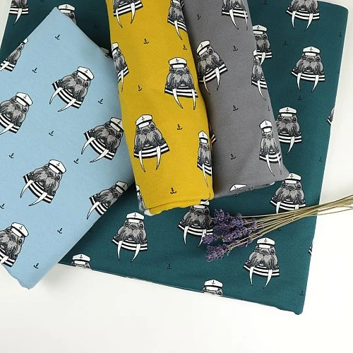 Unser Bio Jersey mit dem Motiv „Captain Walrus“ in ocker aus der Kollektion Sea & Air von Bloome Copenhagen, ist der perfekte Stoff für Kinder und Junggebliebene. Wie süß ist dieses maritim gekleidete Walross mit kleinen Ankern denn bitte? Da wächst doch die Vorfreude auf die Strandzeit. Wir sind verliebt. Er schmiegt sich fabelhaft weich an. Auf Grund der Bi-Elastizität knittert er kaum. Der Stoff lässt sich wunderbar verarbeiten und ist vernäht ein komfortabler Begleiter für die Kleinsten in allen Lebenslagen. Dieser Bio Jersey eignet sich wunderbar für Baby- und Kinderbekleidung wie Kinder Shirts, Kinder Hoodies, Schlafanzüge usw. Selbstverständlich können daraus ebenfalls wundeschöne Baby- und Kinderaccessoires gezaubert werden. Außerdem sind der Kreativität zur Verarbeitung im Wohnbereich keine Grenzen gesetzt.
