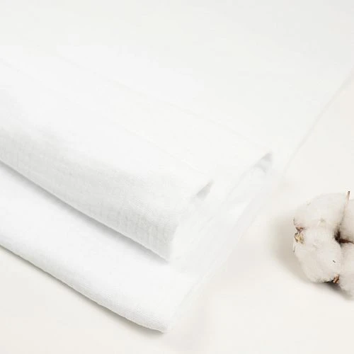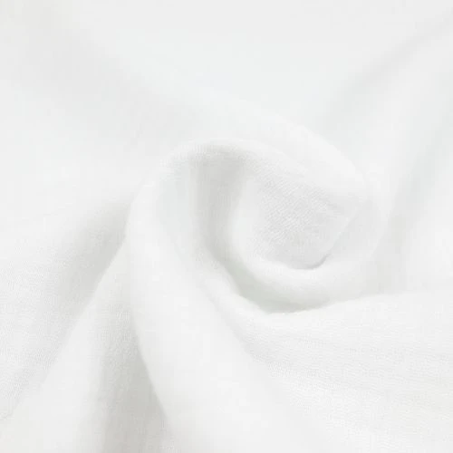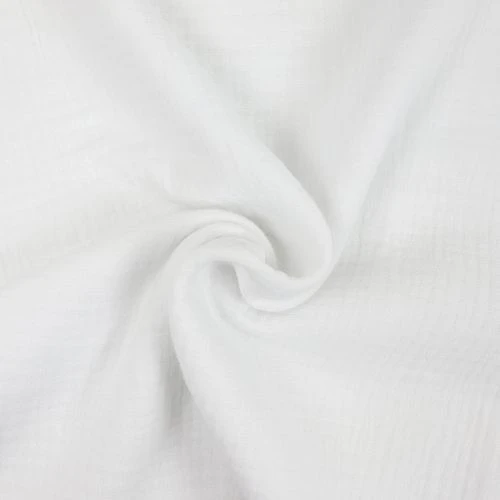 Unser weißer Bio Baumwollmusselin hat einen besonders weichen Griff. Der luftig, lockere Stoff besteht aus drei punktuell verbundenen Schichten und hat eine gecrinkelte Oberfläche. Vorder- und Rückseite sind gleich.